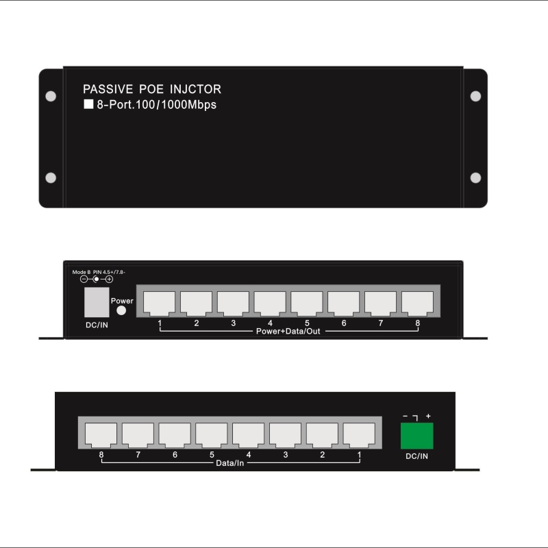 Passive POE Injector Power Input: DC3~56V (DC Jack2.1x5.5mm)