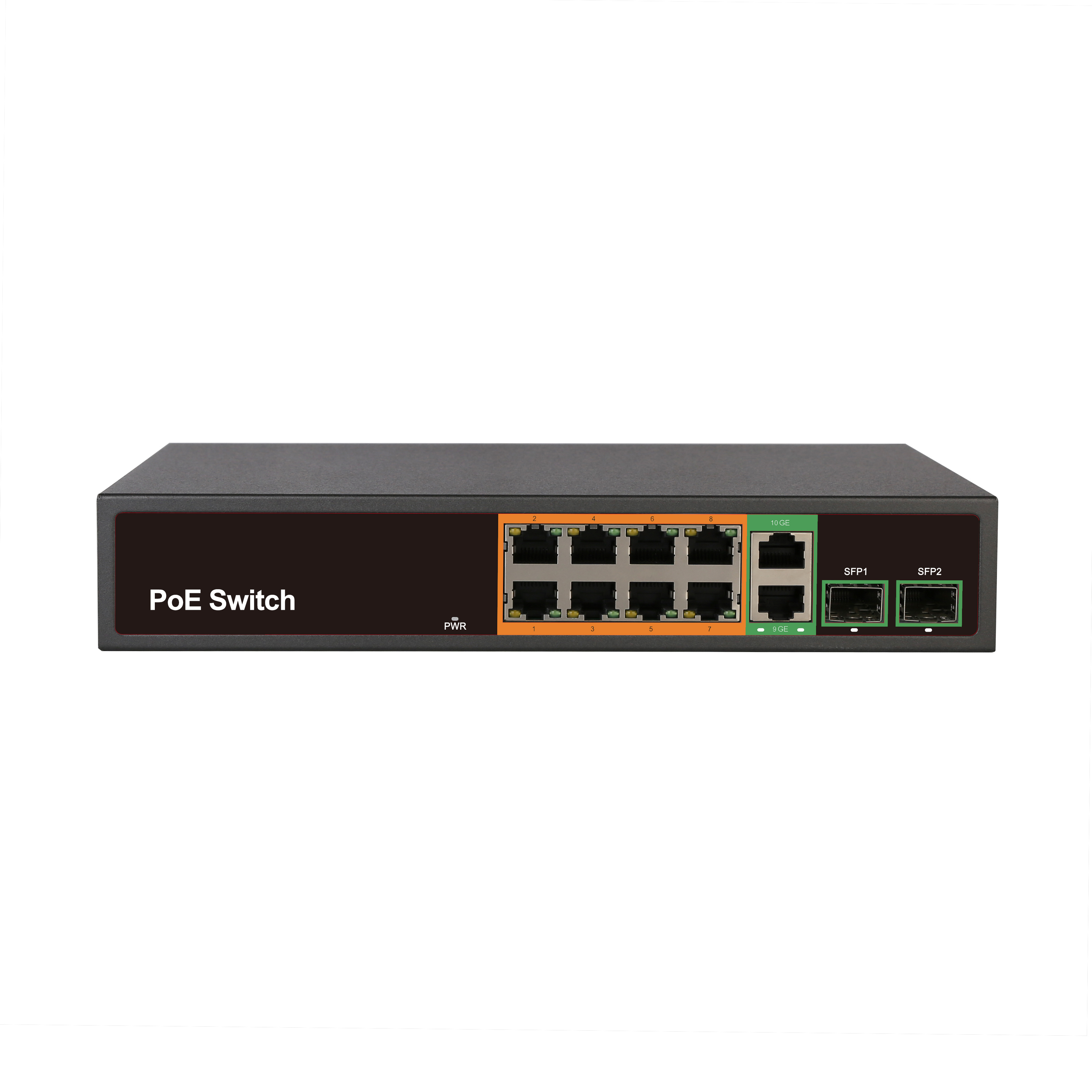 2*100/1000Mbps RJ-45 uplink(port 9~10) 2*1000Mbps Base-SX/LX SFP (port 11~12) Unmanaged PoE switch-Plug and Play IEEE802.3at/af Standard